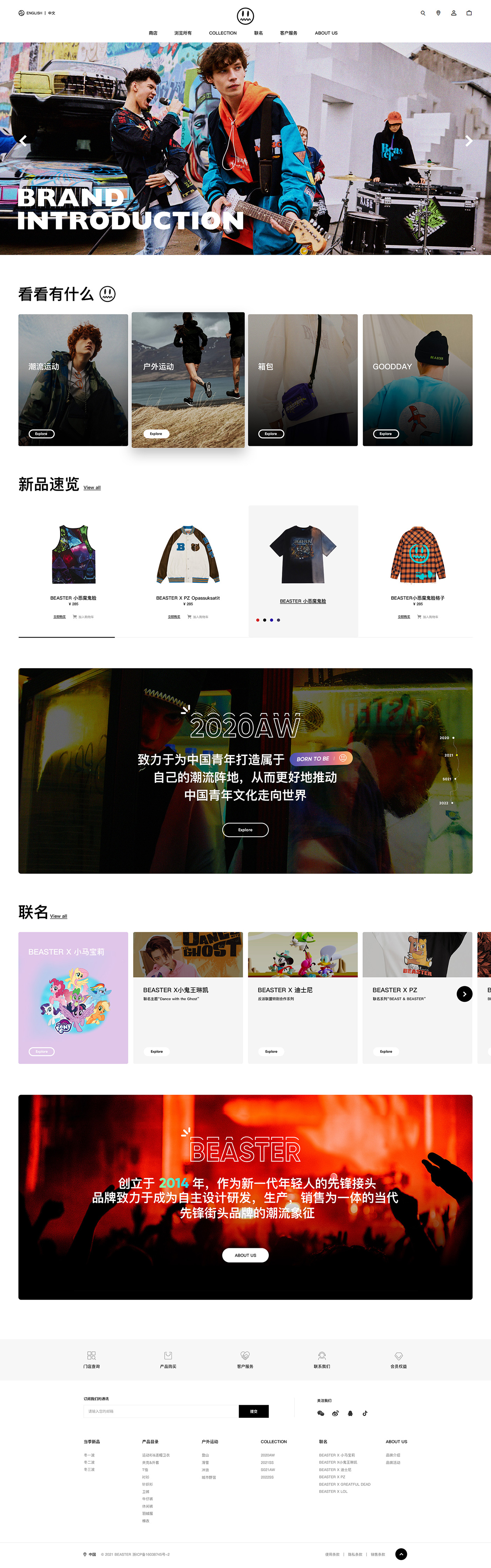 BEASTER品牌创立于2014年,起源于中国杭州,是一个集时尚潮流与青年文化于一体的先锋街头服装品牌。主理人读书时期受到街头文化的影响,敏锐地察觉到街头文化将在世代青年里掀起一场潮流革命,成立了BEASTER品牌。